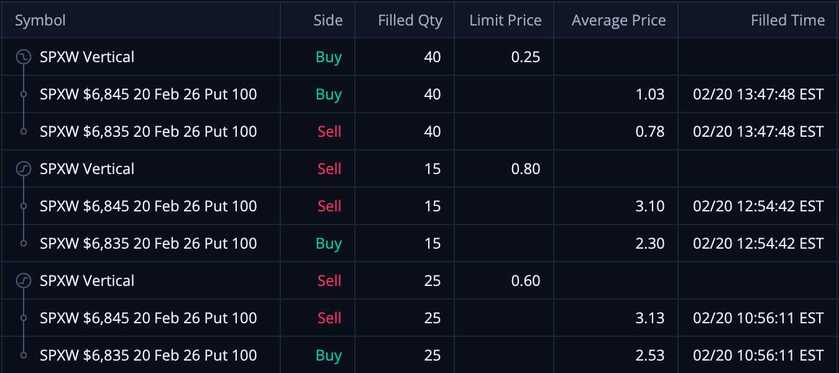 Trade One: 40 SPX 6,845/6,835 Put Credit Spreads